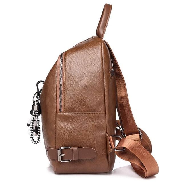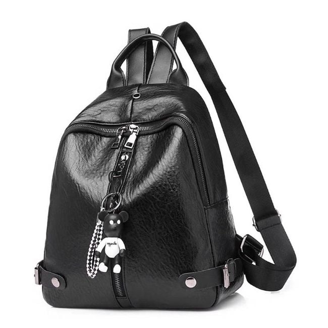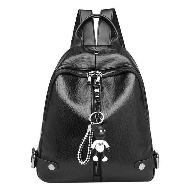 Batoh je z umelej kože, je ozdobený drobným medvedím príveskom a je vhodný ako doplnok na každodenné nosenie.