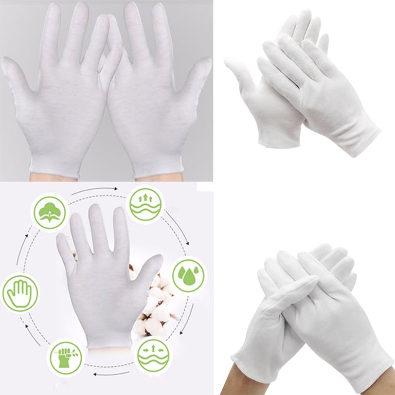 Biele bavlnené rukavice – 6 párov
