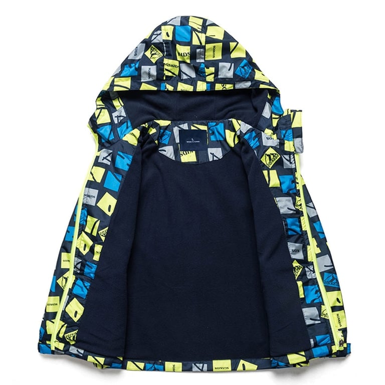 Úžasná chlapčenská štýlová jarná fleecová nepremokavá bunda s kapucňou a výraznou grafikou, vďaka ktorej sa stane obľúbeným kúskom každého chlapca.