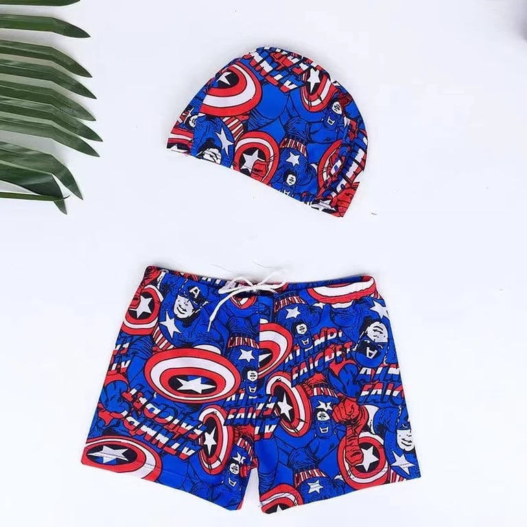 Chlapčenské plavky a plavecká čiapka Kapitán Amerika.