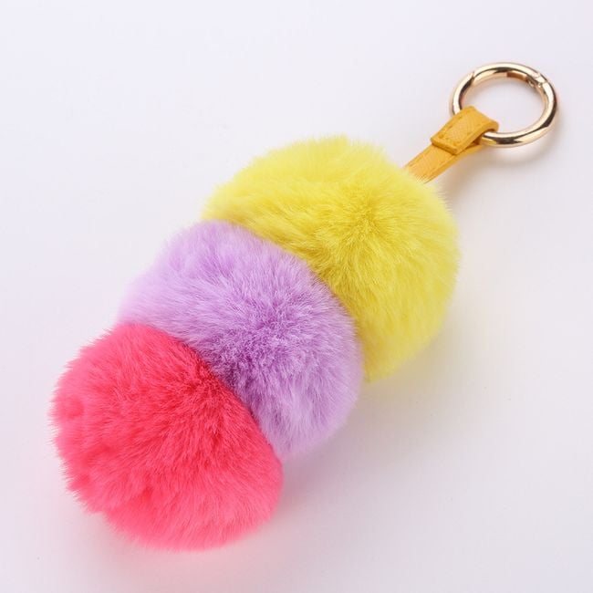 Kľúčenka je tvorená tromi chlpatými guľôčkami. Ozdobiť si s ňou môžete kľúče, batoh alebo kabelku. Na výber máte z niekoľkých farebných variácií.