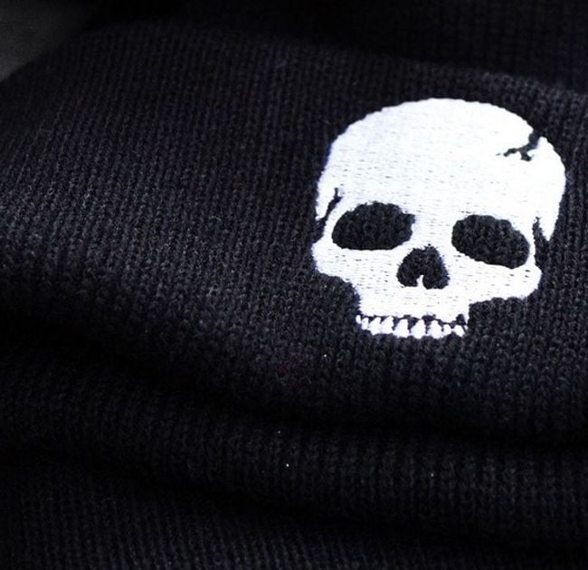 Unisexová čiapka je na čele zdobená nášivkou lebky. Na výber máte z troch farieb.