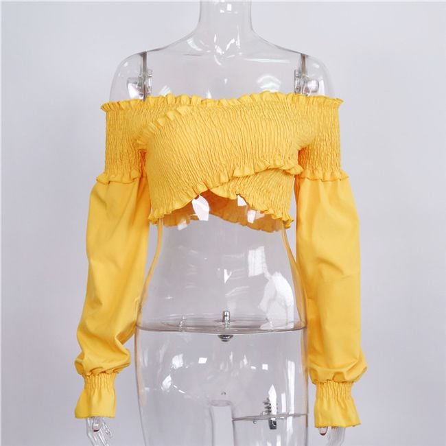Crop top, ktorý bude úžasným kúskom vo Vašom šatníku. Má balónové rukávy a originálne prekladaný vršok. Vybrať si môžete zo 3 farieb. Uvedené sú miery produktu, nie tela.