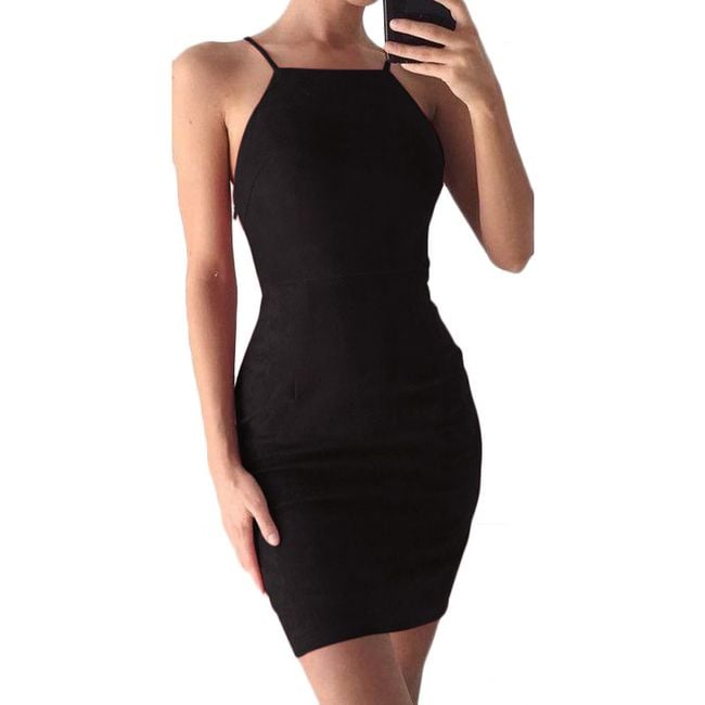 Dámske priliehavé mini šaty sú bez rukávov a disponujú špagetovými ramienkami. K dispozícii sú v 4 farbách.