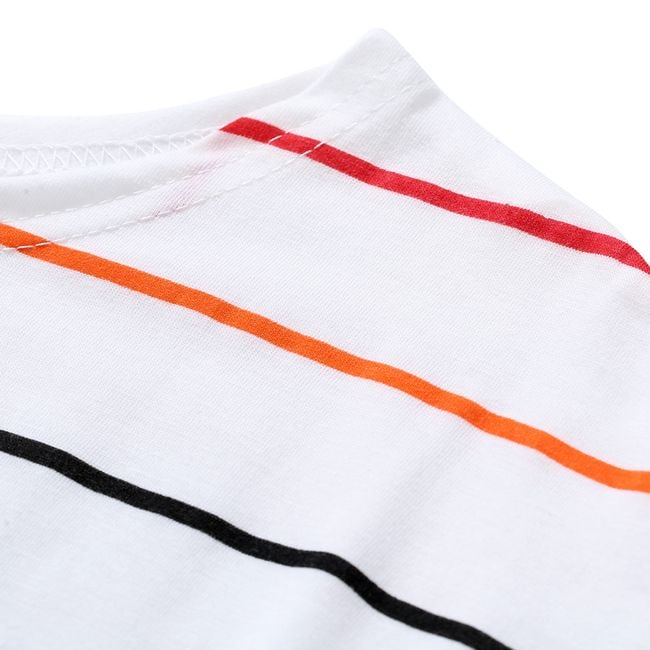 Tričko má štýlový pruhovaný potlač a je vhodné na každodenné nosenie alebo športové aktivity.