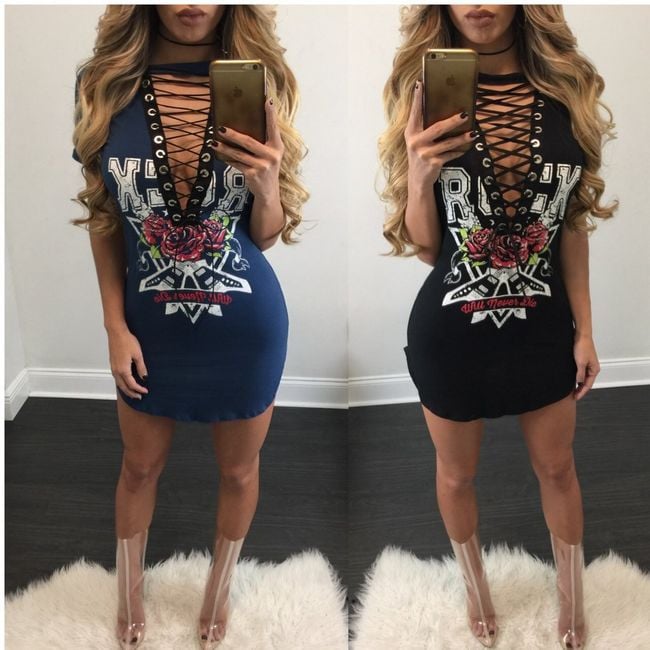 Šaty majú sexy šnurovanie a krátky rukáv.