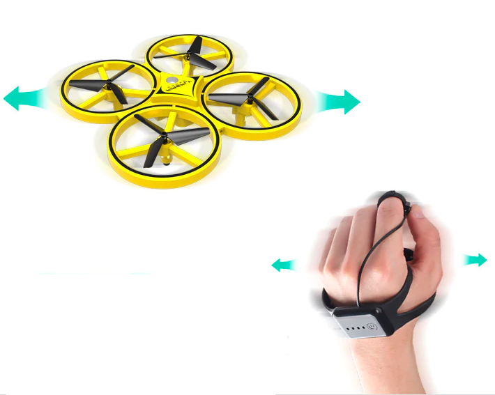 Ovládaním dronu rukou máte široké možnosti manévrovania, iba jemný pohyb ruky vedie k zmene smeru letu. Pripnite pásik na ruku, posuňte ho medzi palec a pripevnite popruh pomocou tlačidla na ukazováčku.