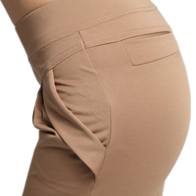 Kalhoty majú vysoký pás a vyzerajú elegantne.