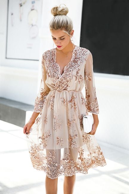 Šaty sú krásne zdobené a hodia sa do práce aj na večierok.
