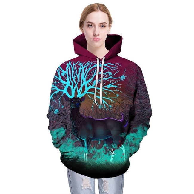 Mikina má krásny potlač a jeleňom, ktorého parohy vyzerajú ako košatý strom s plodmi. Je v unisex prevedení a je vhodná na každodenné nosenie.