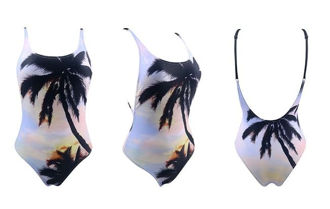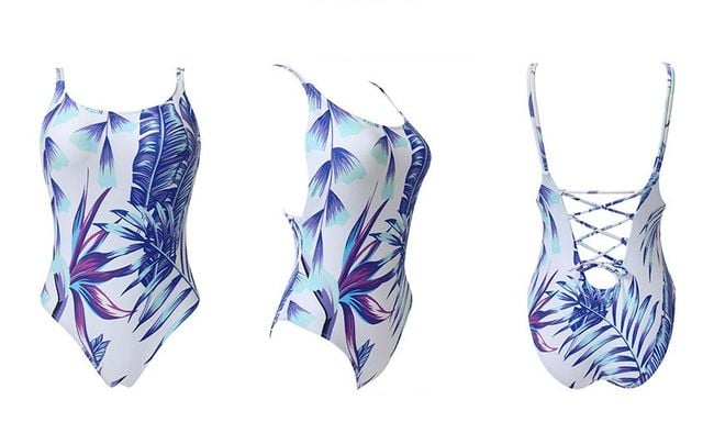 Plavky s obrázkami paliem alebo kapradín sú ako stvorené na pláž. Zadná časť je tvorená originálnym šnurovaním (okrem variantu 1, ten má na chrbte hlboký výstrih).