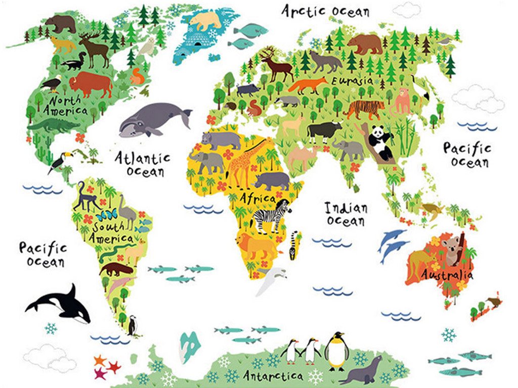 Farebná nálepka s témou našej planéty a zvierat na všetkých miestach našej krásnej modrej planéty. Ozdobte deťom ich obľúbené miesto v detskej izbičke a učte ich vzťahu k prírode.
