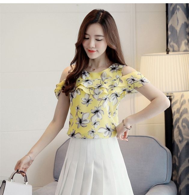 Blúzka má široké ramienka a je zdobená volánikom. Na výber sú 2 farby.