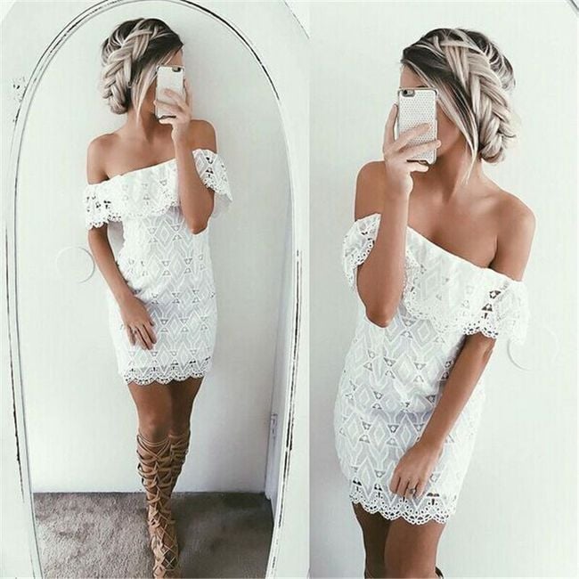Mini šaty so spadnutými ramenami