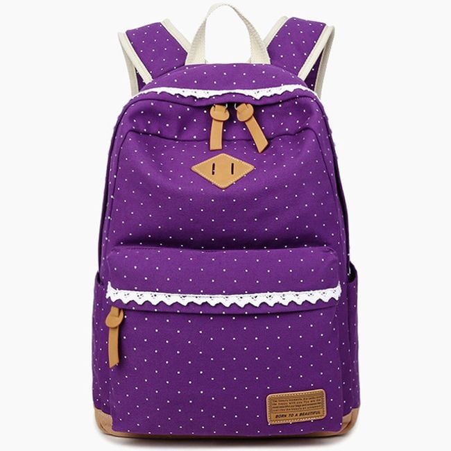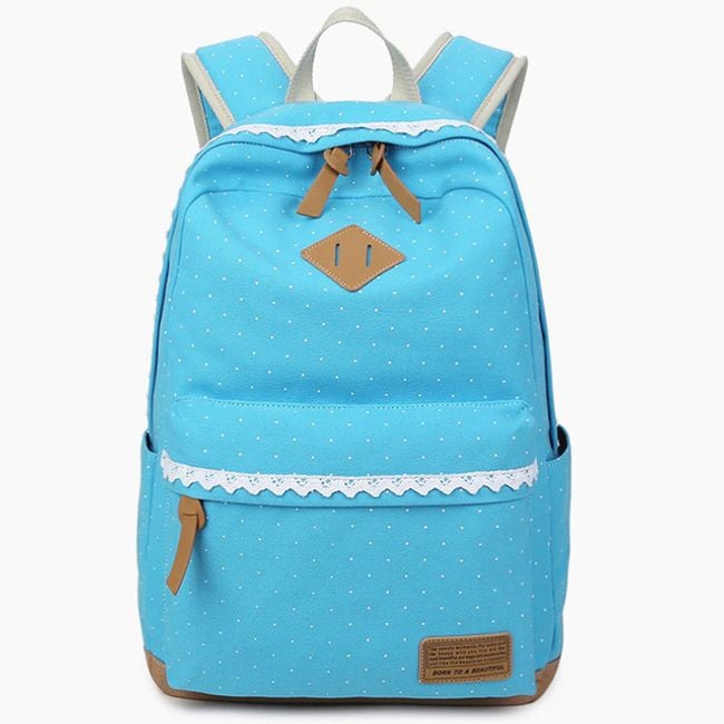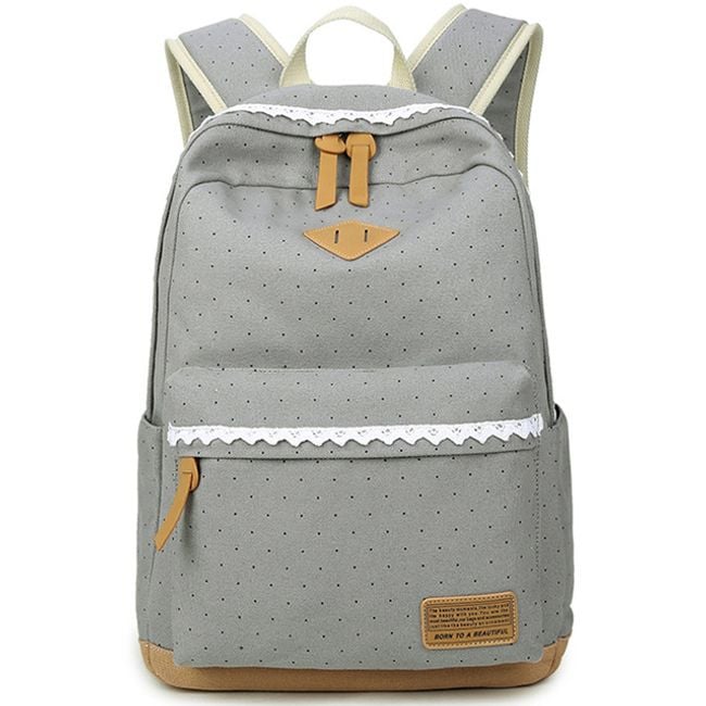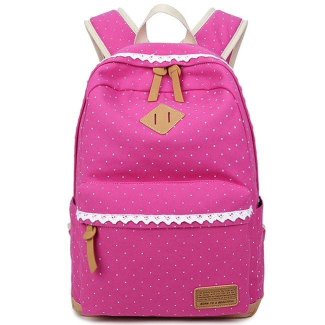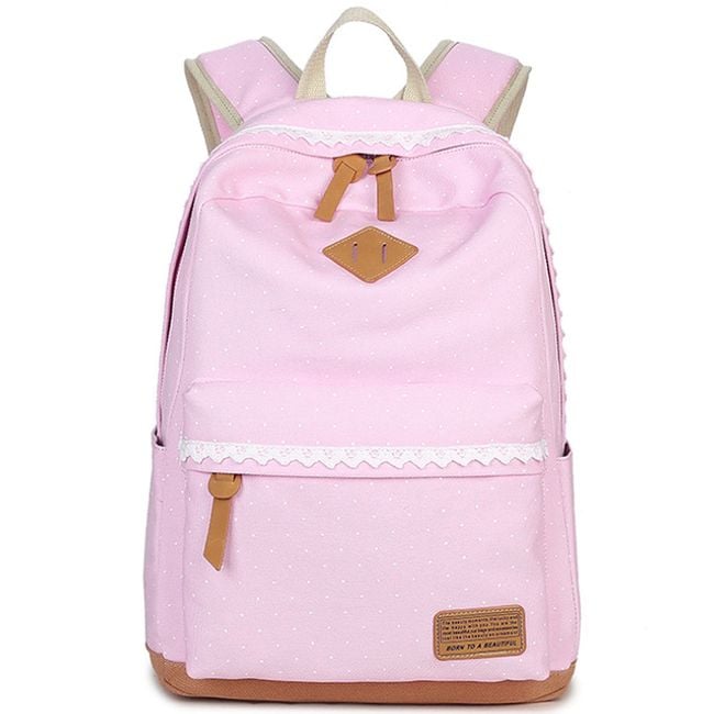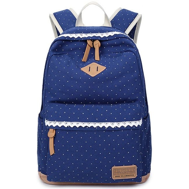 Batoh je úplne očarujúci a to predovšetkým vďaka bodkovanému vzoru. Ďalej si môžete všimnúť romantickú čipku či koženkové detaily. Batoh je naozaj precízne spracovaný. Vo vnútri nájdete aj množstvo praktických vreciek na notebook, mobil či okuliare. Hodí sa do školy, do práce aj na výlety. Navyše je dokonalým módnym doplnkom.