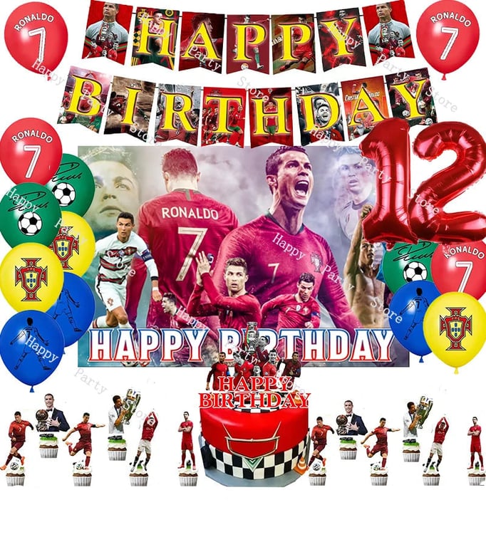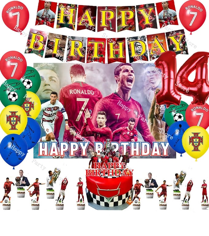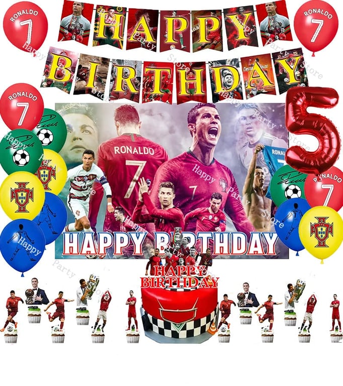 Narodeninový futbalový párty set s balónikmi Cristiano Ronaldo.
