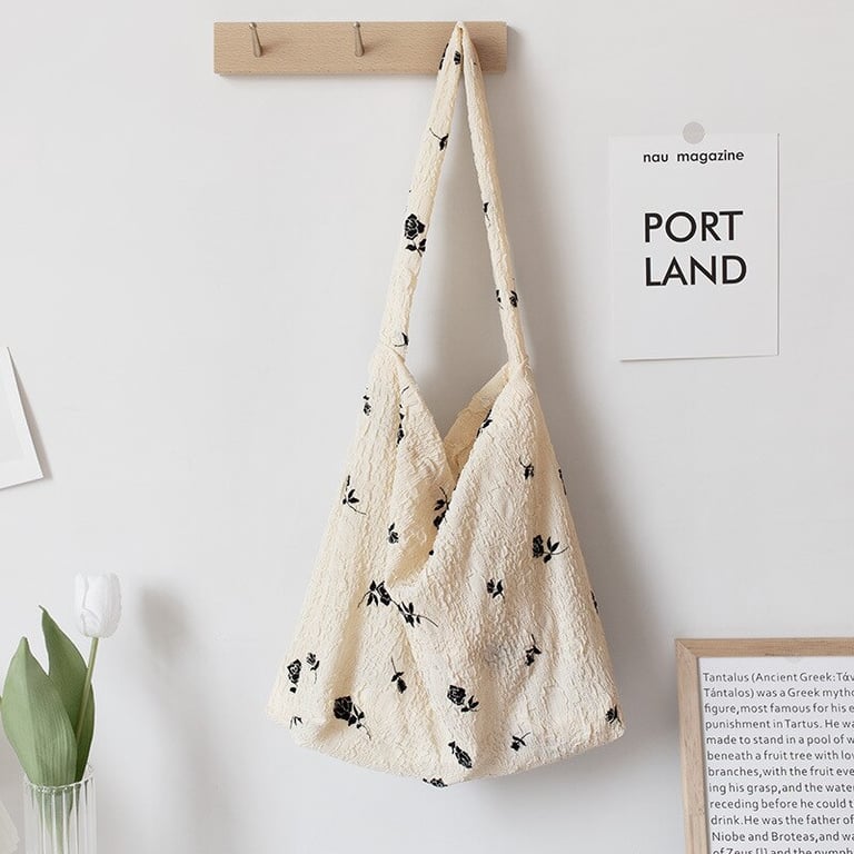 • Štýlová plátená taška cez rameno s motívom ruží je ideálnym parťákom na nákupy či len tak na prechádzku.