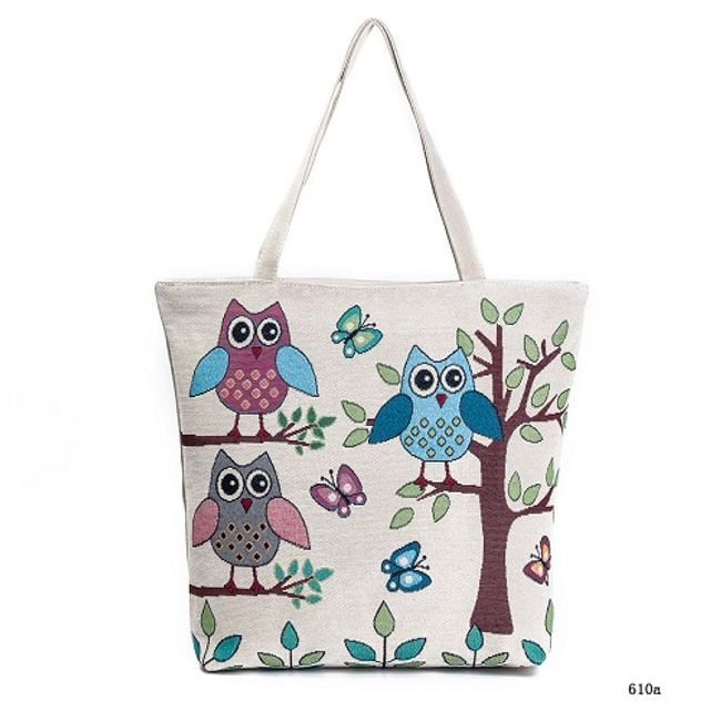Všetky milovníčky sovičiek určite poteší naša nová kolekcia plátených kabeliek. Kabelka sa zapína na zips a na výber máte zo 7 originálnych motívov.