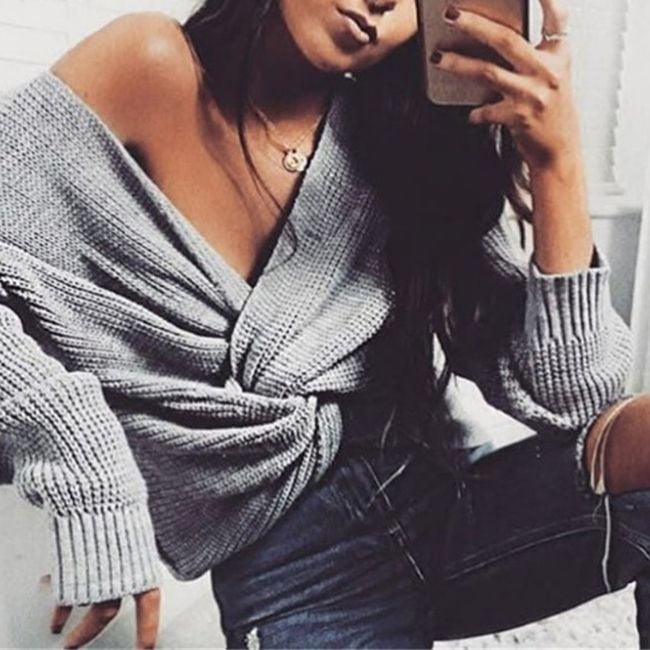 Sveter je z príjemného materiálu a v univerzálnej veľkosti. Sveter je možné nosiť s prekrížením vpredu aj vzadu.