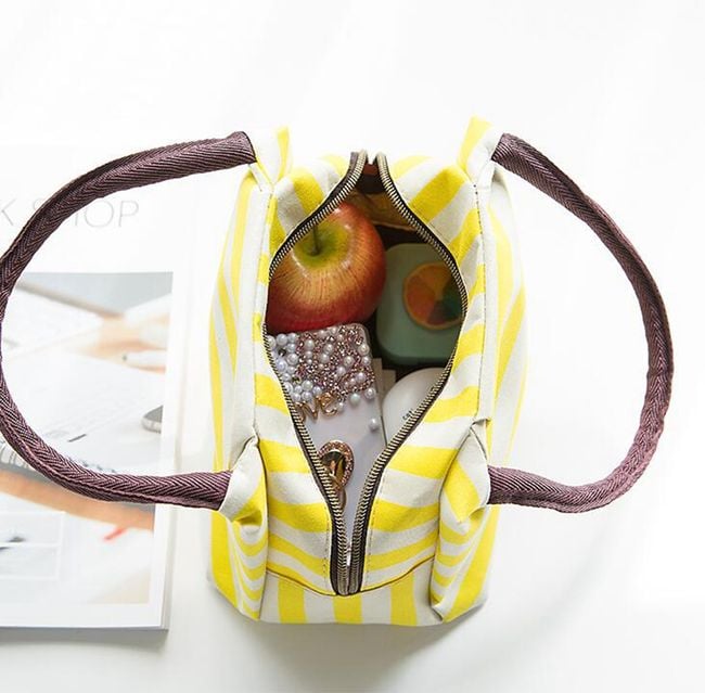 Taška má jednoduchý pruhovaný vzhľad a je vhodná na prenos potravín napríklad na piknik, z obchodu domov alebo do práce.
