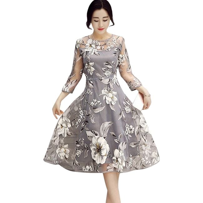 Šaty imitujú šaty z päťdesiatych rokov sú posiate kvetinami, majú 3/4 rukávy, výstrih do O a budú sa skvele hodiť na spoločenské akcie.