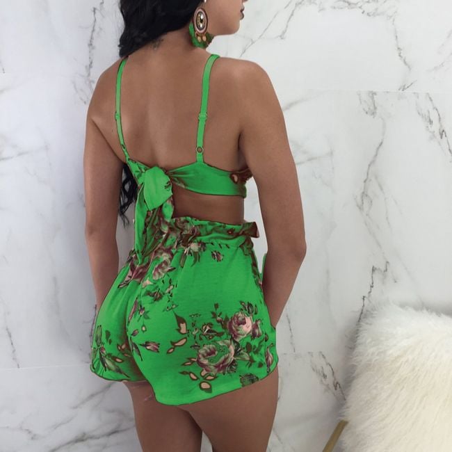 Šortky majú vysoký pás na gumu a top má sexy výstrih.