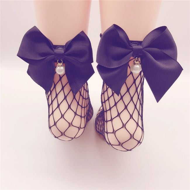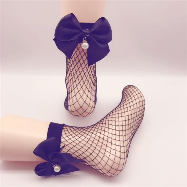 Ponožky zdobia nádherná mašľa a umelá perlička.