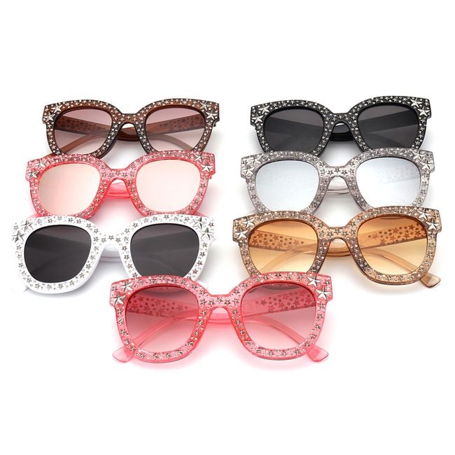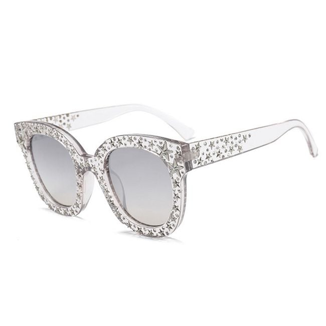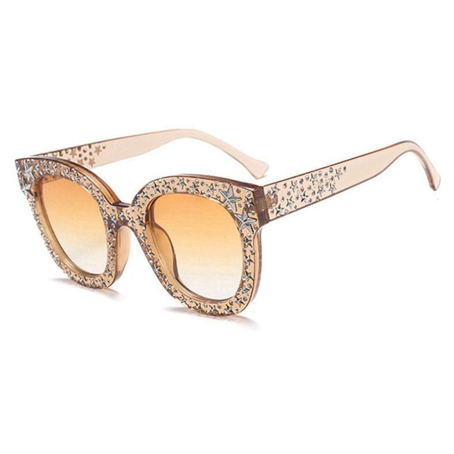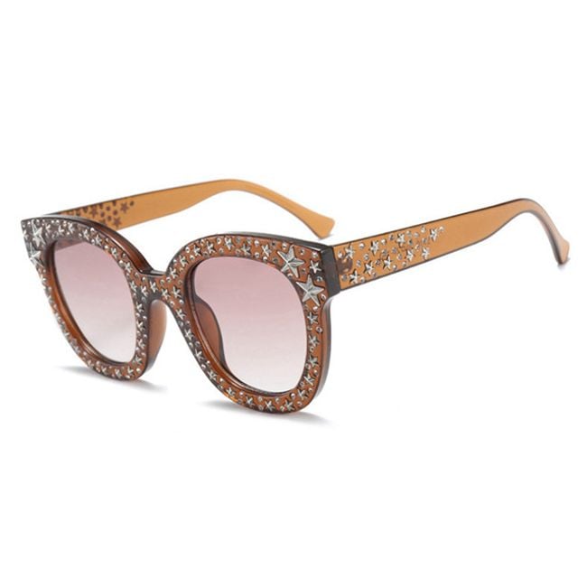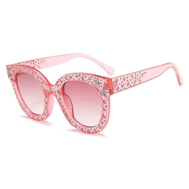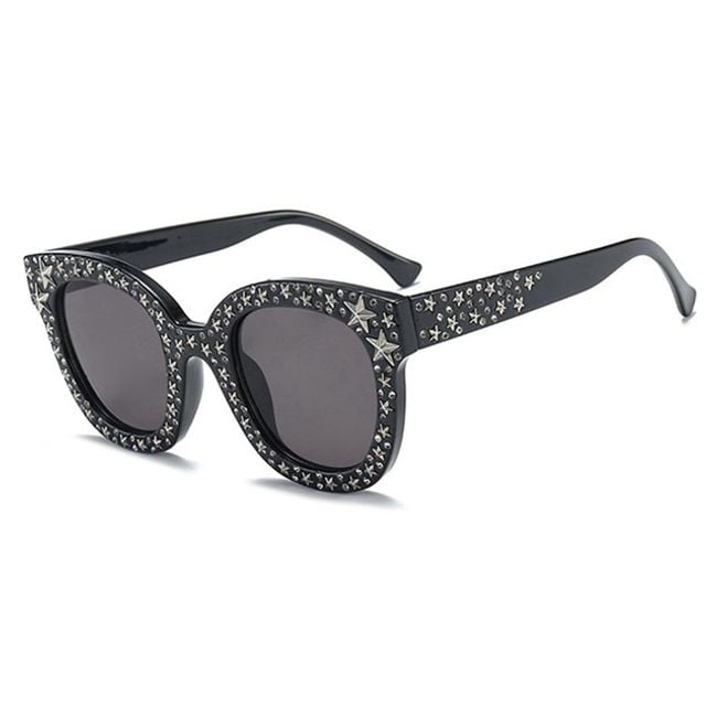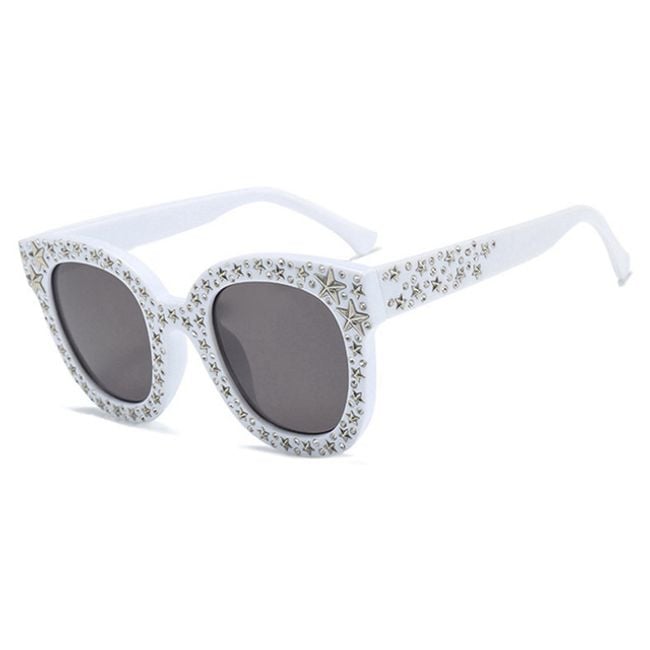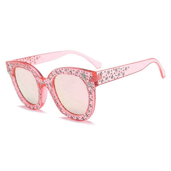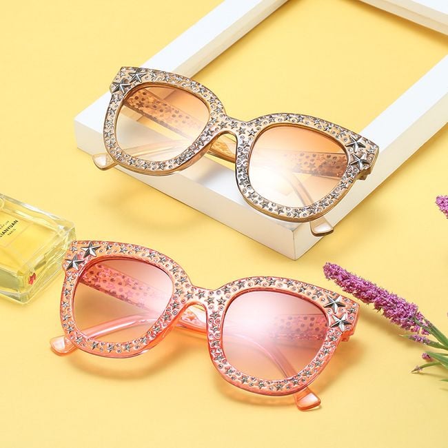 Okuliare sú zdobené malými hviezdičkami a majú štýlový tvar. Slnečné okuliare s hviezdičkami