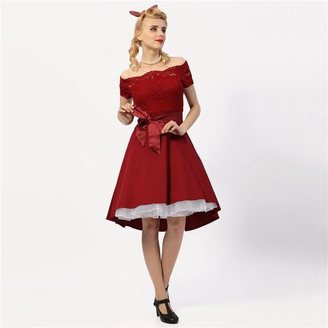 Spoločenské šaty s čipkou a mašľou si zamiluje snáď každá žena! Uvedené sú miery produktu, nie tela.