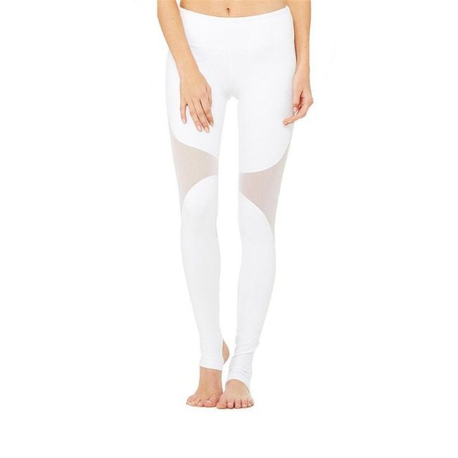 Dámske športové legíny so sieťkou, ktorá slúži ako praktický aj dizajnový prvok. V tabuľke veľkostí sú uvedené miery produktu, nie tela.