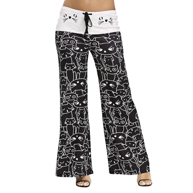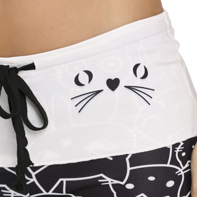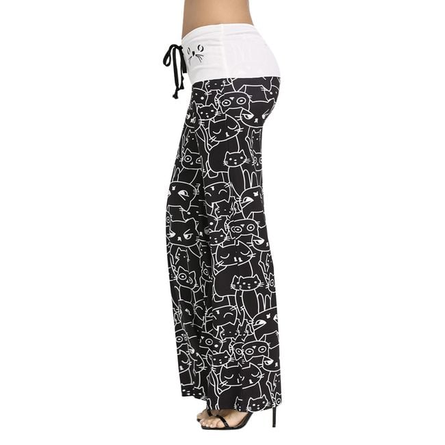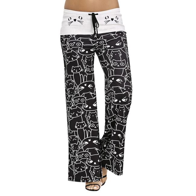 Tepláky pre všetky milovníčky mačiek! Tepláky sú v čierno-bielej farbe a v páse ich možno stiahnuť šnúrkou. Uvedené sú miery produktu, nie tela.