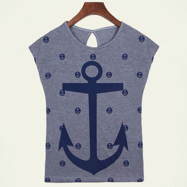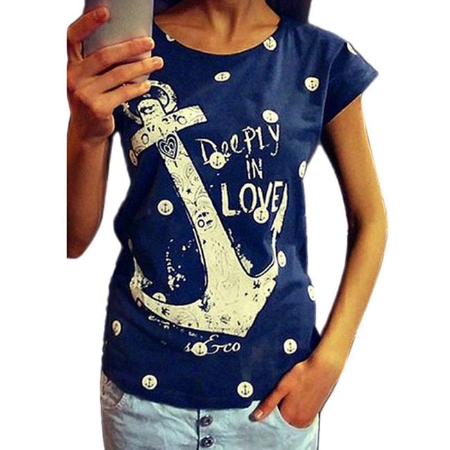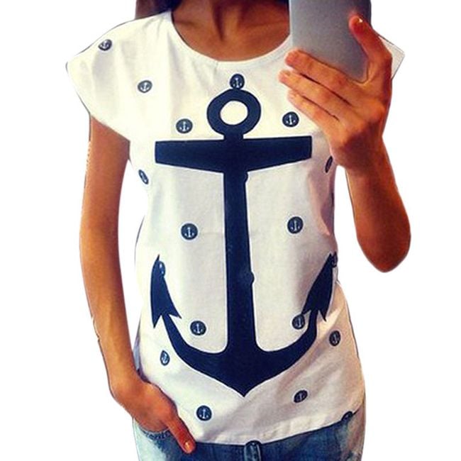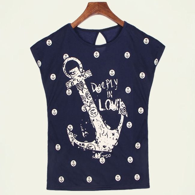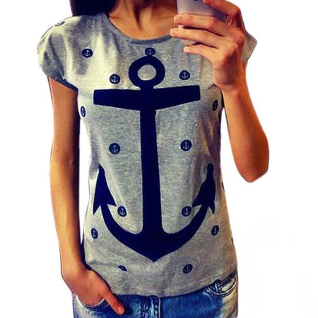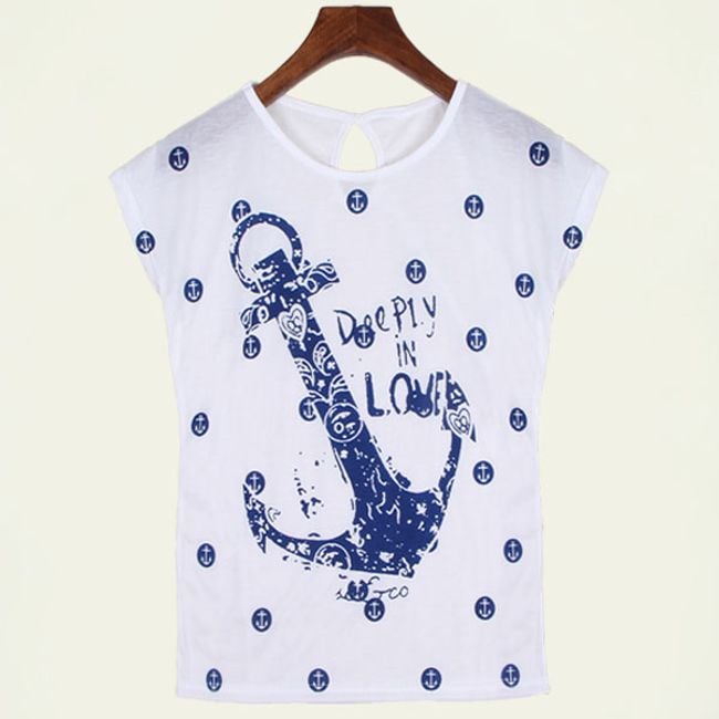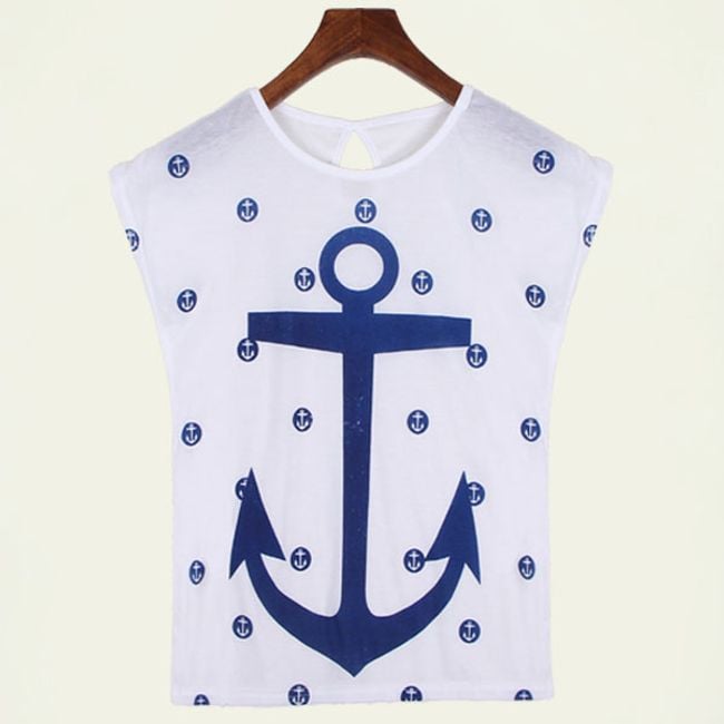 Tričko s kotvou bude pekným letným kúskom! Tričko je v klasickom strihu s krátkym rukávom a na prednej strane je zdobené potlačou kotvy a bodiek! Uvedené sú miery produktu, nie tela.