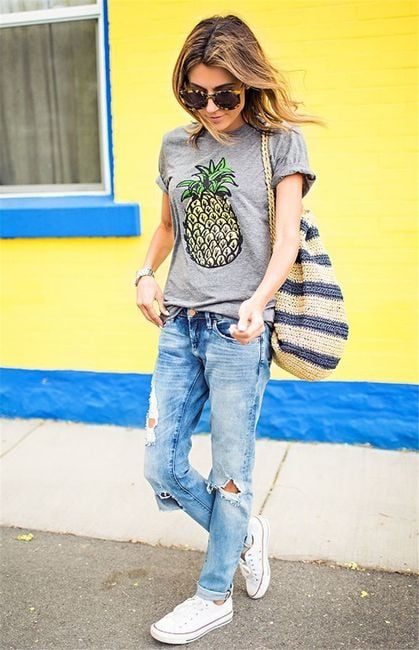 Motív ananásu nikdy nevyjde z módy, a preto vám jedno také ponúkame. Tričko je v šedej farbe a na rukávoch má detail ohnutia. Bude sa hodiť na denné nosenie do školy či práce, ale aj na lenošenie doma. Prosíme, venujte pozornosť tabuľke veľkostí, ktorá sa nachádza na dolnej časti stránky.