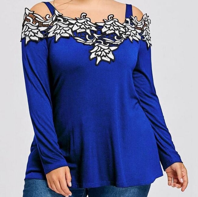 Originálne tričko s odhalenými ramenami je dostupné vo väčších veľkostiach (č. 5-8). Vyberať môžete zo štyroch farieb.