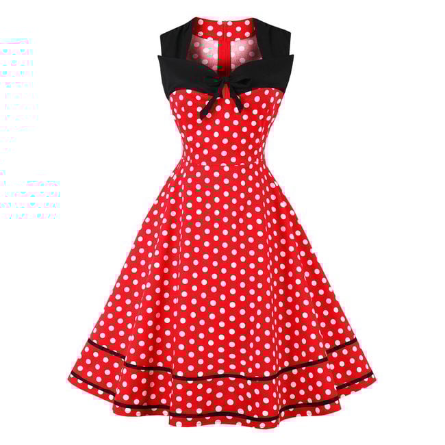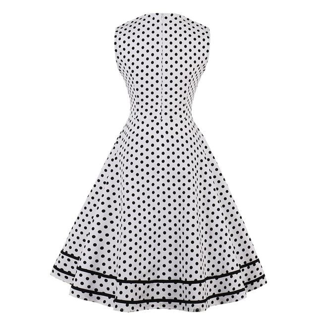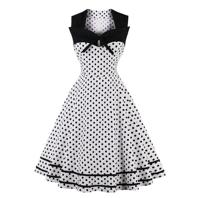 Dámske vintage šaty s bodkami v štýle 50. rokov. V tabuľke veľkostí sú uvedené miery produktu, nie tela.