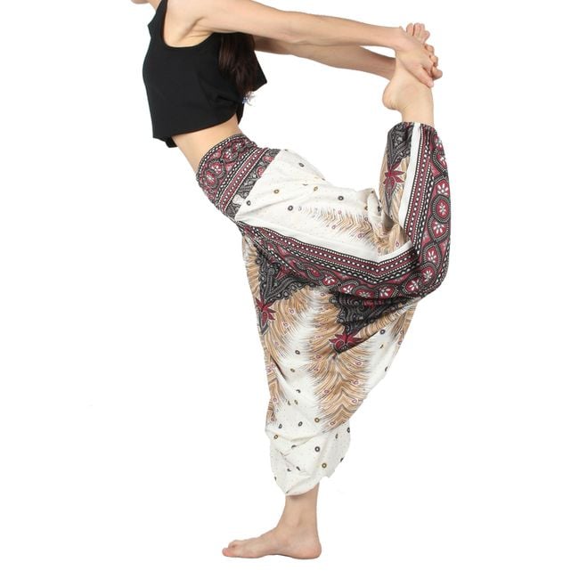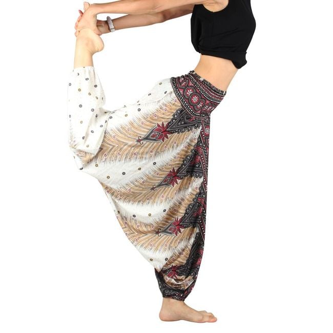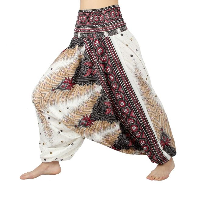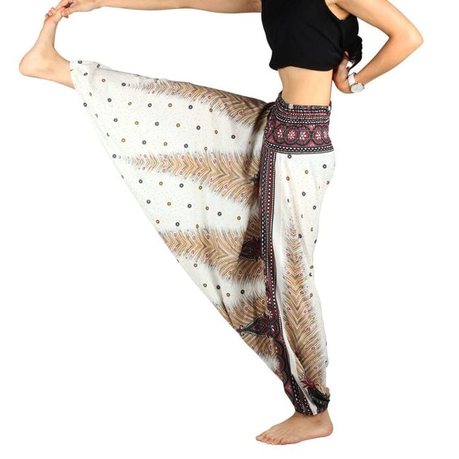 Harémové nohavice so vzorom budú pohodlným kúskom na nosenie. Uvedené sú miery produktu, nie tela.