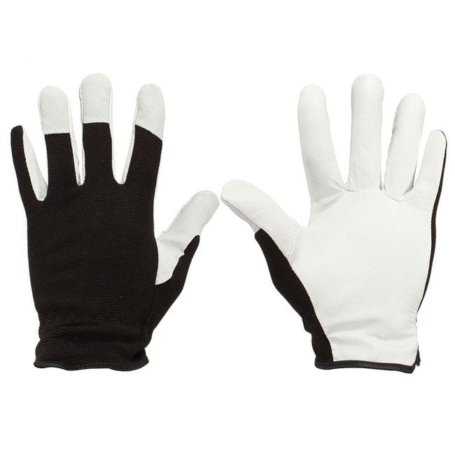Pracovné rukavice sú vhodné pre pánov aj dámy. Sú v príjemnej farebnej kombinácii čiernej a bielej farby. Bezpečnosť je zabezpečená umelou kožou. Zápästie je vyrobené z elastického materiálu pre dokonalé prilnutie.