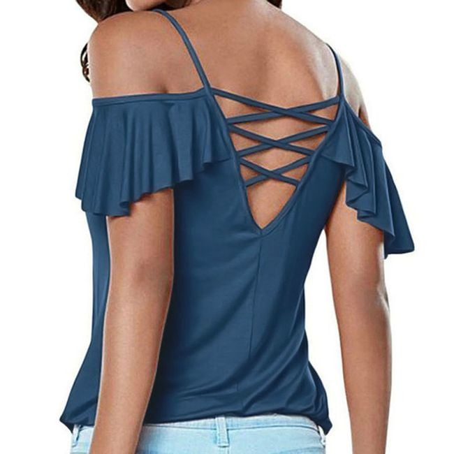 Kombinácia väčšieho výstrihu, spadlých rukávov a odhalených chrbátov robí z trička originálny a sexy kúsok.
