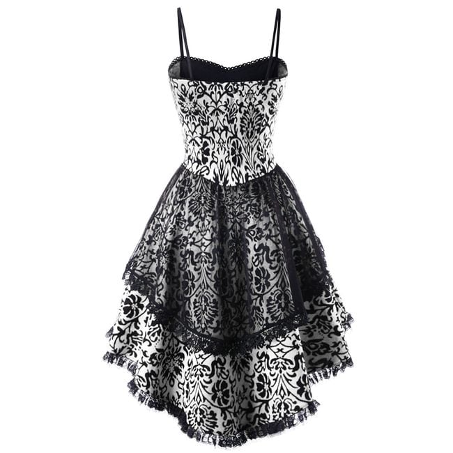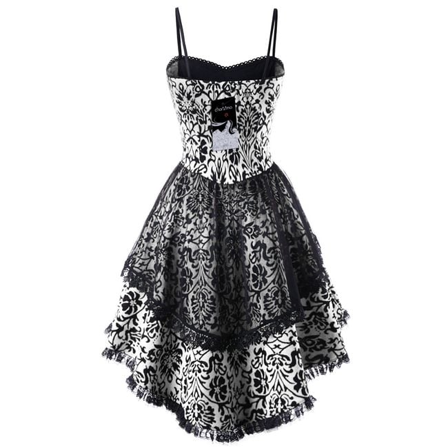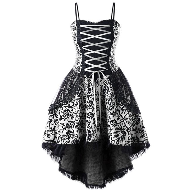 Šaty sú veľmi krásne, posiate ružičkami, majú šnurovanie na prsiach a asymetrickú sukňu