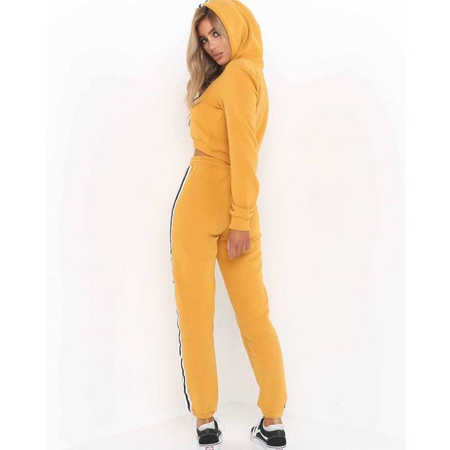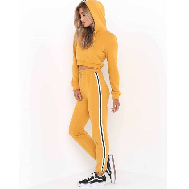 Dámska tepláková súprava sa skladá z teplákov s vysokým pásom a mikiny kratšieho strihu. Vybrať si môžete z troch farieb.