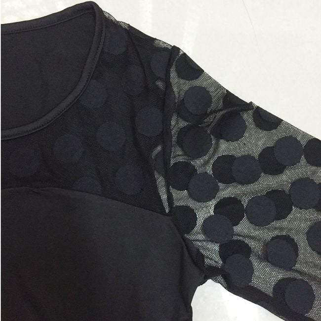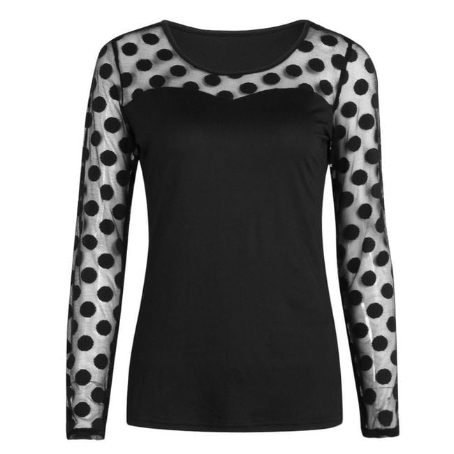 Tričko s priehľadnými rukávmi zdobenými bodkami
